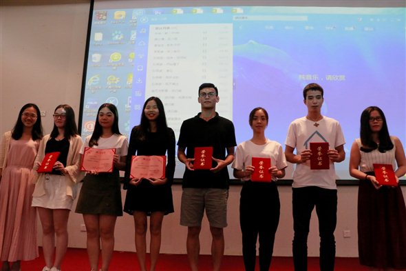 媒体系学生会主席罗晓婷同学授予聘书