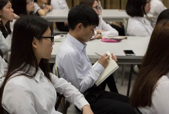 马旭老师对先前收集同学们的摄影作品作出相关点评,从色彩表达、周围环境、主题表达和构图方面为大家做出详细解释,比如谈到某一张照片,拍摄人物时不应把脚下方切掉,应当从腿上方开始构图,同学们认真做笔记,收获良多。老师还谈到学习摄影的途径,分别从专业培训和自学两方面着手,还以幽默风趣态度讲述他摄影的经历。最后马旭老师还分享了几部学习摄影的书籍,供同学们参考。