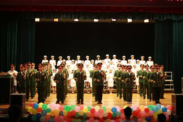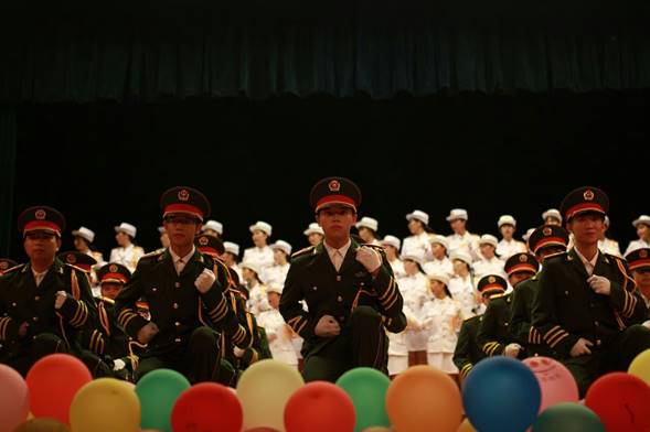 比赛前,三系在活动中心排练,白色和绿色的军装,表现出军人的气魄。排练期间辅导员与学生会主席前来观看,并为同学们指导,同学们认真聆听并积极配合。晚上比赛时,同学们准备就绪,辅导员与部长等为同学们鼓气加油。穿着军装演唱的同学们端庄大气,“一二三四一二三四像首歌”同学们使出浑身力气吼出来,他们英姿煞爽,“唱给蓝天和大地,唱给妈妈和祖国”,举起手来,向观众敬礼,表现同学们的豪情壮志,最后再来个一二三四敬礼,观众几声喝彩。一首振奋人心的祖国歌曲,同学们生动演绎出来,体现一种爱国情怀。