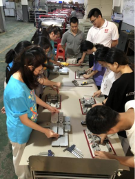 本次培训包括理论学习、实操培训和相应的考试。理论课程方面共开展了职业道德及法律法规、安全操作及高效生产、封壳机的安装调试及具体操作、设备维修保养等内容,由晟图机械资深技术专家授课,各位学生全神贯注听讲、专心致志记录,收获颇丰;通过实操培训,将理论与实践相结合,使学生对理论学习内容有了更加深刻的认识。