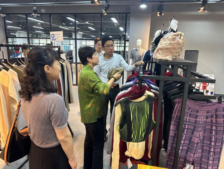 司书记一行在企业负责人引导下走访了面料检测中心、岛精设备经销中心、精品板房、展厅、大朗毛织服装产业学院教室,感受企业对品质的追求、行业前沿技术、产品设计工艺、企业实力及校企合作成果,其间司琪书记还慰问了在此就业的东职学子。