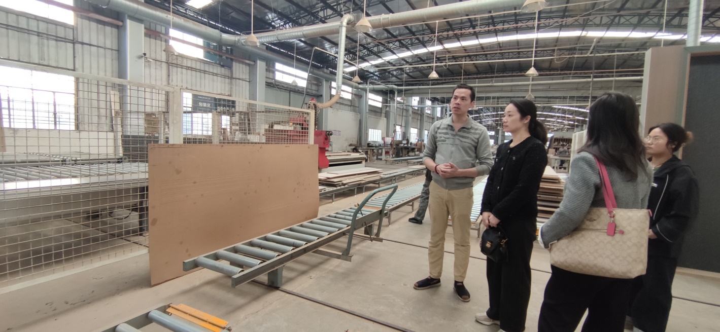 2024年12月19日下午,创意设计学院《高端定制家具门墙柜一体化关键技术研究及设计实践》科技特派员易熙琼副院长、肖飞老师带领学生团队赴派驻企业广东佳居乐家居科技有限公司调研交流。团队对派驻企业的高端定制家具产品做了深入的了解,进一步了解了高端定制家具门墙柜一体化的市场现状与发展趋势;通过调研定制家具制作工艺流程,了解了开料、封边、打孔等各项工艺流程,并深入了解了定制家具的材料及圆弧工艺、海棠角工艺等高端定制家具关键技术。