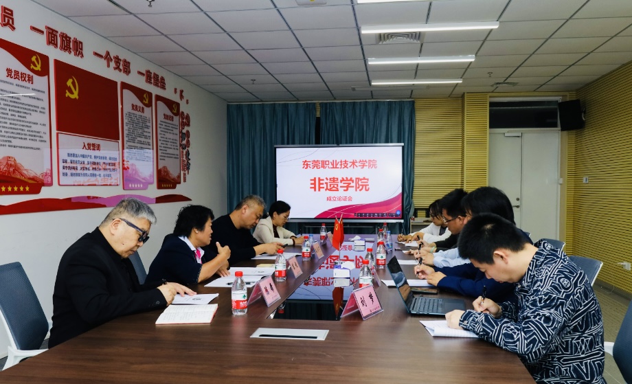 11月19日,东莞职业技术学院非遗学院成立论证会在创意设计学院召开。本次会议共邀4位专家出席,分别是中国非物质文化遗产研究院学术院长、中国传统工艺振兴计划协同创新中心主任孙冬宁,广东省文化和旅游厅原副厅长、一级巡视员陈杭,中国工艺美术学会非遗工作委副主任、广东省非遗保护工作委员会专家委员陈希,东莞理工学院教务处副处长、非遗学院副院长许燕转。我校创意设计学院院长陈炯然、副院长亓晓丽等参加了论证会,会议由创意设计学院刘梦老师主持。