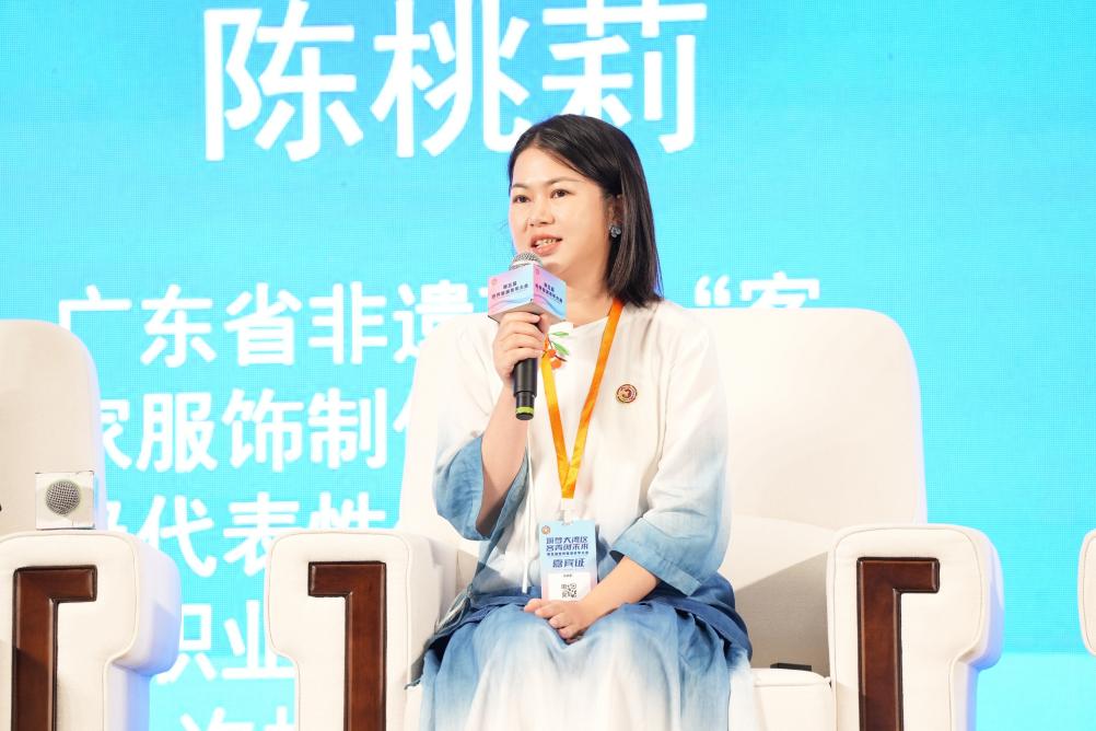 客青代表和客商领袖充分展示了全球客属青年的智慧和文化创意。陈老师就客家服饰文化的深厚内涵、客家文化在高校及社会的传承与创新路径、传统文化跨界互联等议题,与来自海内外的青年领袖进行了深入交流和探讨。陈老师还强调了传统文化跨界互联的重要性,认为客家文化应与现代科技、艺术、设计等领域深度融合,创造出新的文化产品和体验形式,从而吸引更多年轻人的关注和参与。