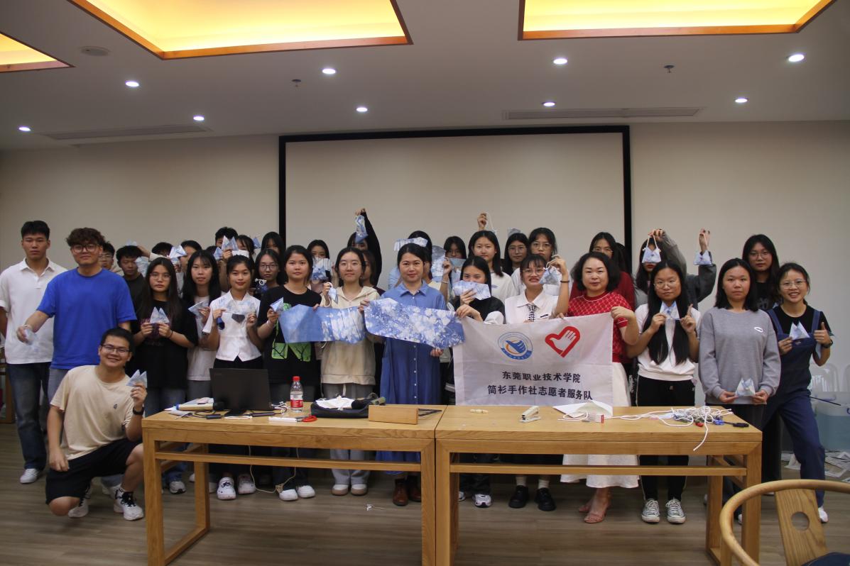 陈老师以广东省非物质文化遗产代表性项目“客家服饰制作技艺”作为引入,通过讲授客家文化内涵与服饰艺术特征、制作技艺要点,引导当代大学生认识客家传统服饰文化,并成为传统文化的传承者和创新的实践者。本次活动是以沉浸式制作产品的方式进行,让学生亲身感受客家服饰的制作工艺,整个体验活动包括三个环节,首先是讲授客家文化内涵与服饰艺术特征、制作技艺要点,引入活动文化内涵。然后,深入剖析客家蓝染技艺的发展及工艺原理,宣传和推广传统工艺之美、传授传统工艺技法。最后,以“非遗走进生活”为理念,引导学生借助蓝染工艺技艺设计生活用品,并指导学生自己进行手工蓝染锦囊的设计与制作。参与活动的50名学生在本次活动中都制作出了具有自己独特设计韵味的蓝染作品。