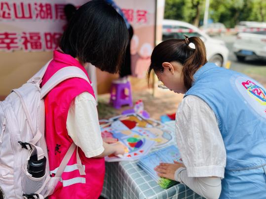 22级产品设计班团支部、21级工业设计1班团支部前往松山湖阳光雨党群服务中心(北部园),协助松科苑社区综合服务中心一起开展“益暖松湖”松山湖基层便民服务入小区志愿活动。此次活动整合多方资源,现场设有非遗文化体验区、政策宣讲区及便民服务区,让居民在“家门口”享受贴心、周到的服务,更好地满足群众多样化需求,提高群众生活质量。