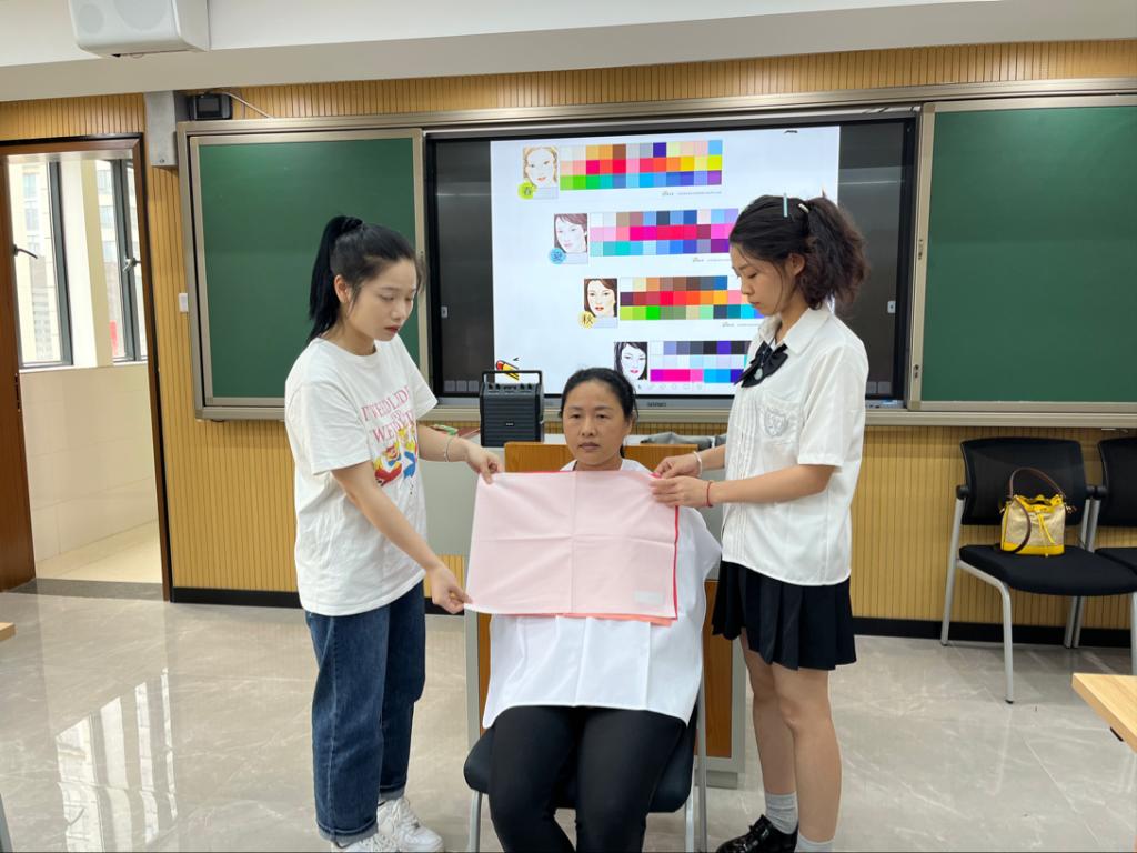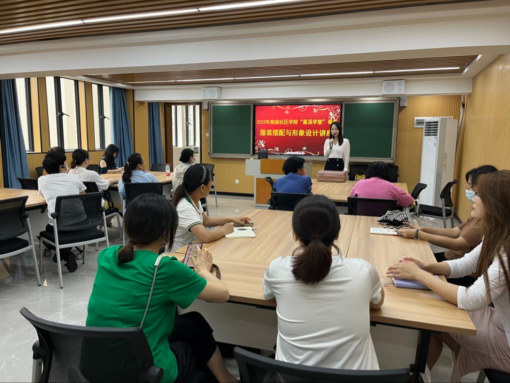 服装色彩的搭配和谐,往往能产生强烈的美感,有着极强的吸引力,给人留下深刻的印象。为提高居民形象品味,让居民遇见更美的自己,2023年5月24日下午,由创意设计学院主办的社区服务讲座活动——形象设计与服装搭配,在东莞市南城街道南城社区综合服务中心成功举办,南城社区40多位女性朋友参加了活动。