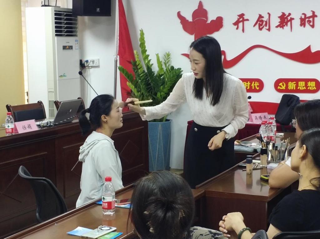 本次社区服务讲座培训的主讲人任娟老师作为服装专业教师,多年来对于形象设计与化妆造型有很深的研究。任娟老师带齐了化妆品和化妆工具,化妆课分两部分进行,第一部分30分钟理论,着重从脸部底妆、眼妆、唇妆三大方面进行讲解。第二部分现场示范化妆,现场挑选了一位女性进行现场化妆演示,边示范边讲解边答疑,通过示范详细讲解化妆的基础知识和技巧、如何根据个人皮肤特点选择化妆品、保养护肤小技巧等。。