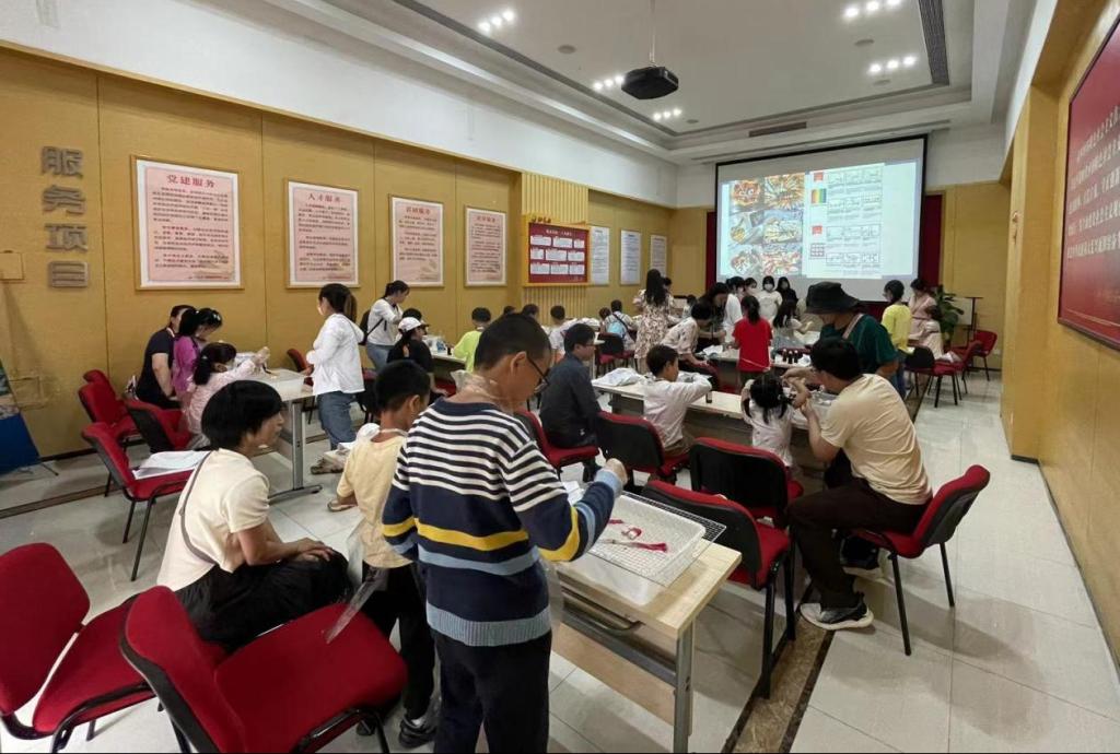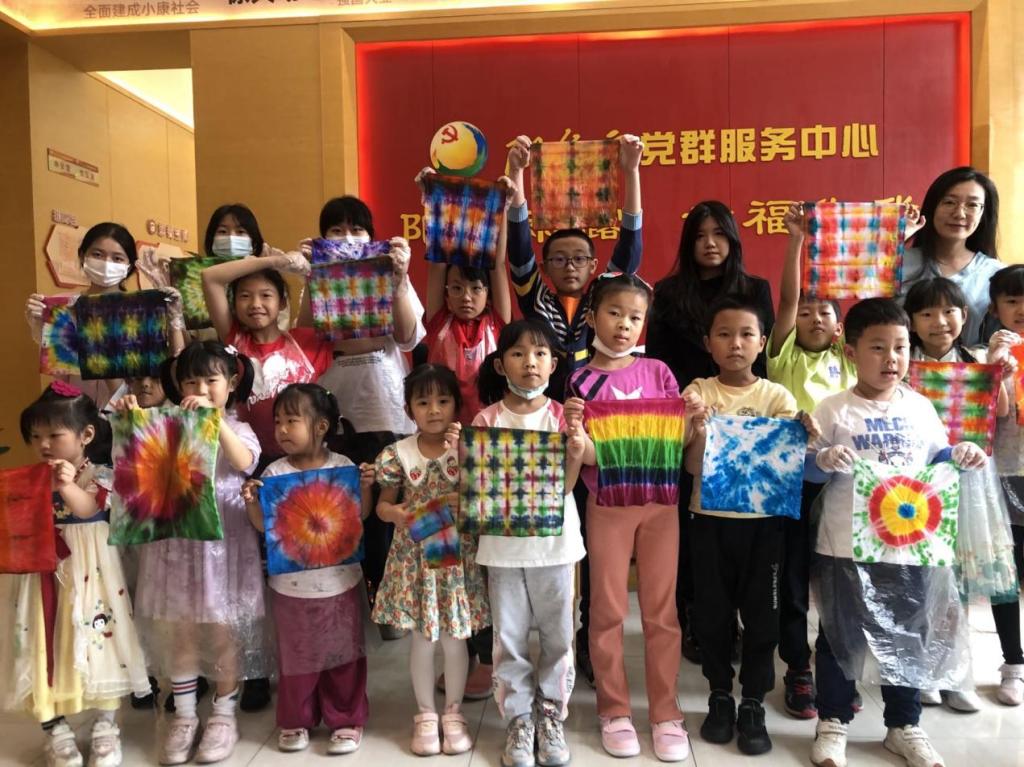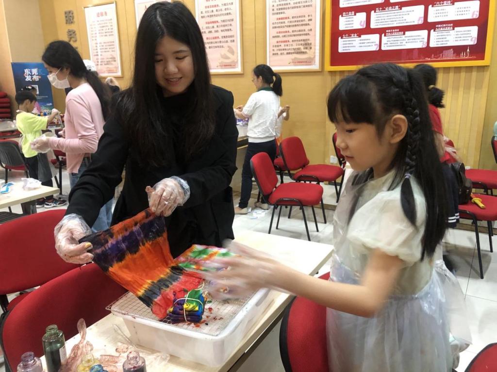2023年4月22日下午,东莞职业技术学院创意设计学院副院长亓晓丽、服装与服饰设计专业陈若棋老师与松山湖阳光雨党群服务中心(台科花园)携手开展美育公益科普系列活动之扎染课程,合计20组家庭约40人参与。
