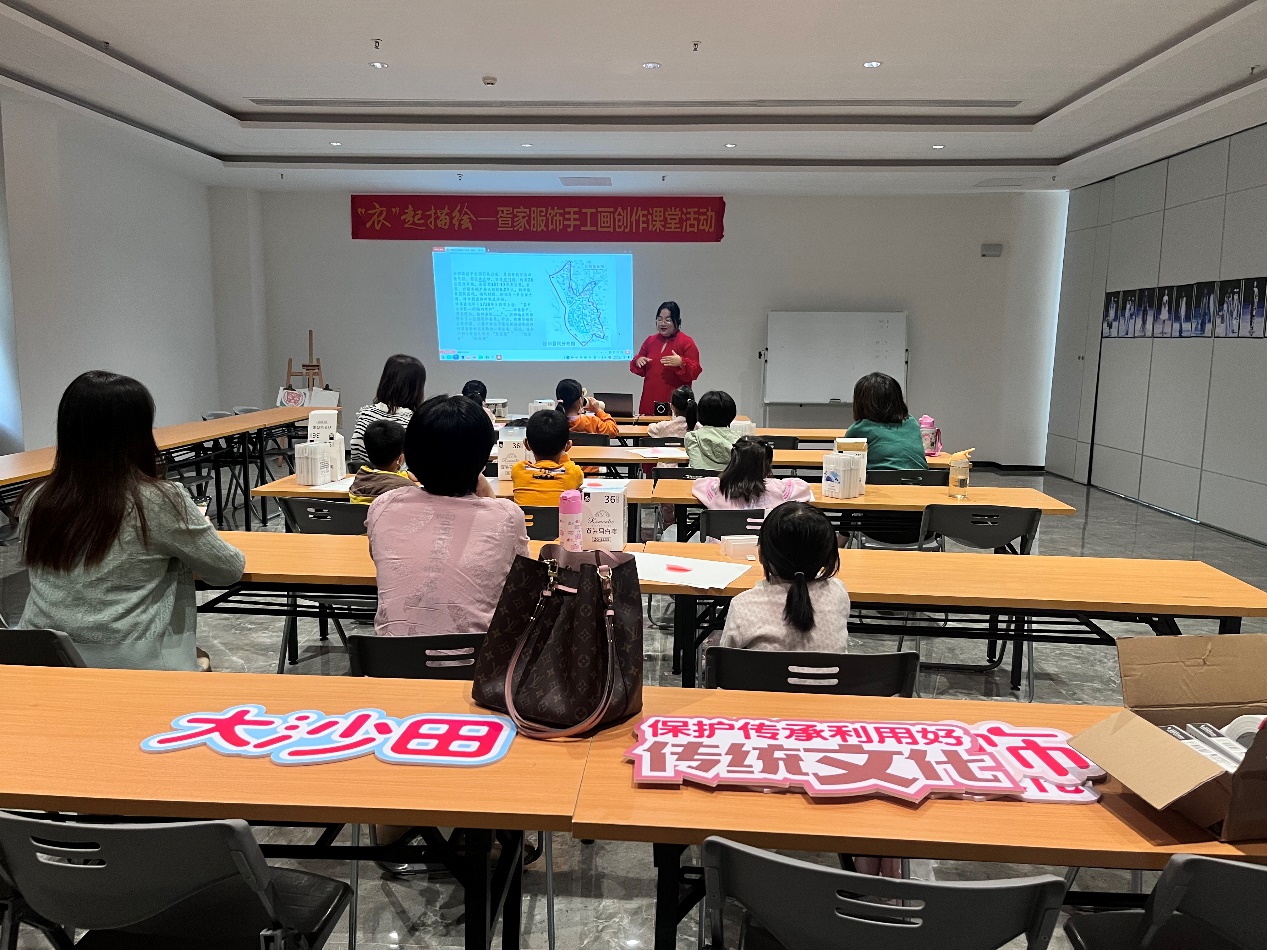 11月5日-12日,我院青年教师郭霄霄带领团队在东莞沙田文化艺术中心开展了四期系列活动:《“衣”起描绘—疍家服饰手工画创作课堂》,本次活动中教师讲解了东莞沙田疍家服饰历史、沙田疍家传统服饰展示、其他地区疍家服饰等内容,讲述沙田疍民服饰文化故事,邀请亲子家庭们共绘疍家服饰。教师引领亲子家庭通过绘画方式向沙田居民传播疍家文化,使他们能更好的认知和感受家乡文化、增强对疍家文化的认同感。