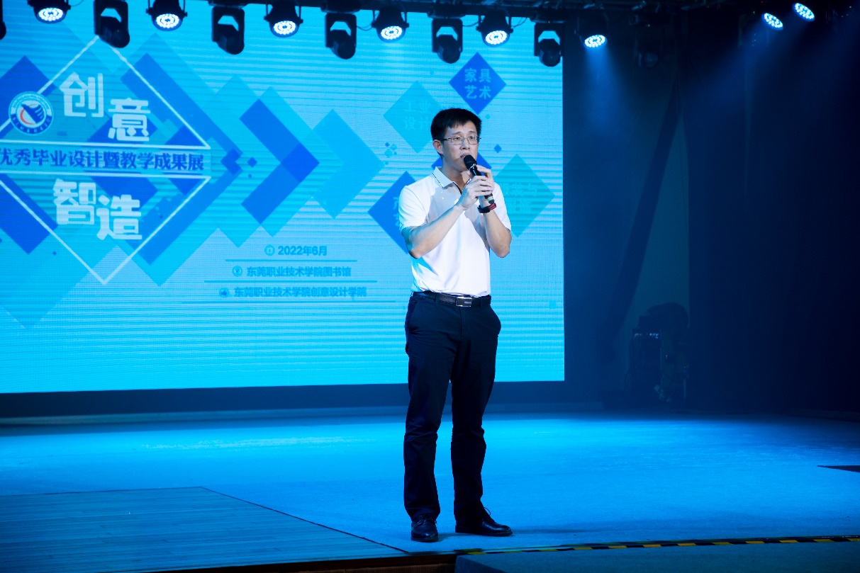 东莞职业技术学院2022届服装设计毕业设计动态展于6月24日在大学生活动中心小剧场隆重举办。东莞职业技术学院蔡东宝副书记、创意设计学院陈炯然院长,以及企业届的领导嘉宾、专业教师等出席了此次动态展。创意设计学院陈炯然院长在开场时致辞并宣布本届毕业设计动态展的开幕。