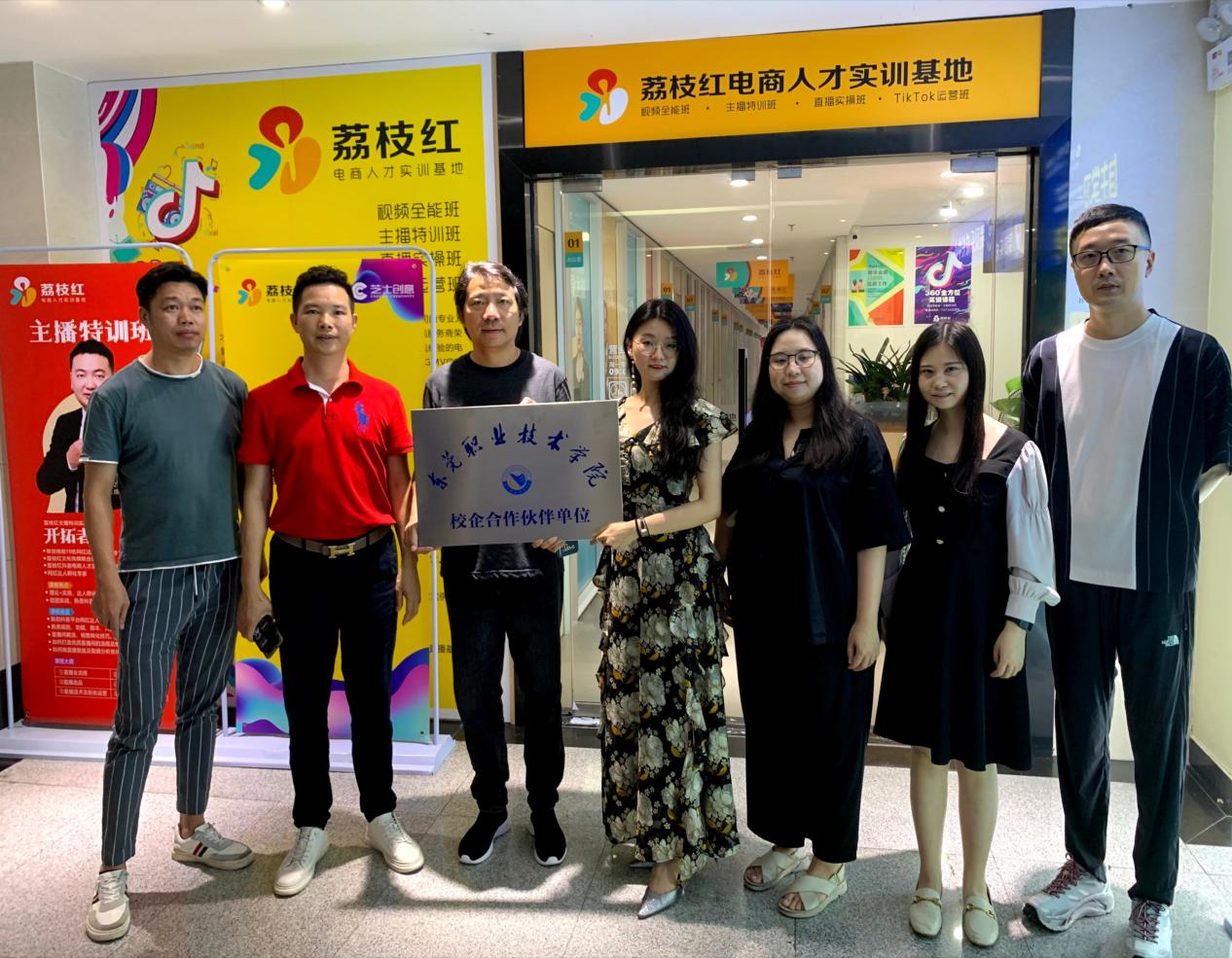 为探索广告艺术设计专业发展的新途径,拓宽学生实习就业的新路子,深入了解最新的企业电商运作模式,6月8日下午,广告艺术设计教师团队赴东莞荔枝红电商企业进行了调研考察。东莞荔枝红电商,是一家一站式业务流程服务和电子商务解决方案供应商,在企业方热心接待和精心安排下,引导教师参观了美赞臣母婴品牌直播间、鞋类直播间等6个主题直播间,近距离感受主播直播现场,种草(产品介绍)、猜价格(助播与主播互动)、货比货、上链接(购买链接)、下单演示等环节,节奏感极强。体验了直播间正在测试的虚拟形象直播系统、直播专用手机、专业美颜灯、直播支架补光灯和直播专用摄像头等直播设备。
