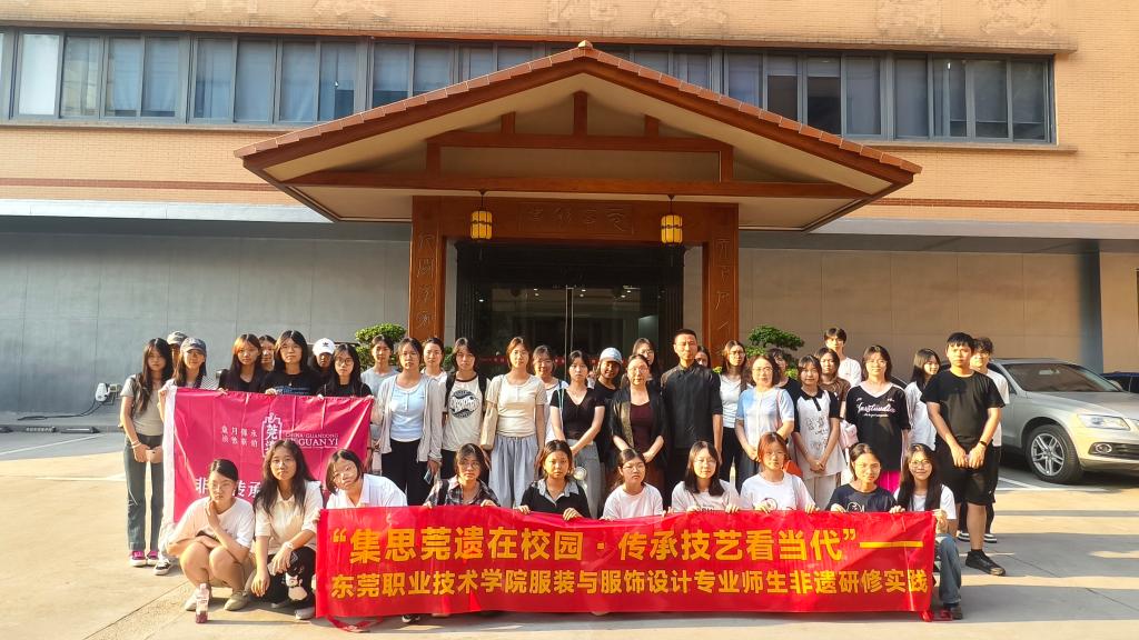 黄文萍带领2025级服装2年1班学生前往位于东莞市虎门镇的元亨服饰文化传播有限公司。作为专注于香云纱这一非遗技艺制作与开发的企业,元亨服饰企业负责人介绍了企业发展概况与文化理念,随后带领师生参观展馆,深入生产车间,让学生们领略到香云纱独特的光泽与肌理之美,体会到匠心传承的深厚底蕴与生命力。