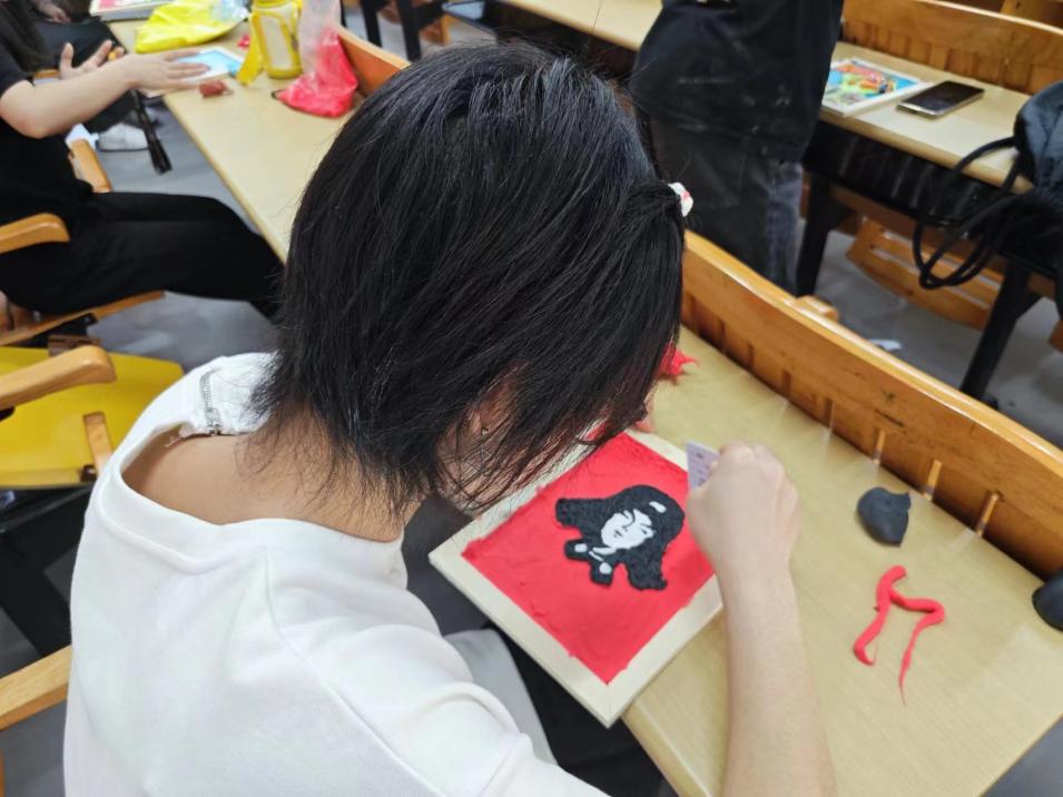 青马学员用多色彩轻粘土画出自己心中的雷锋形象,把热爱党、热爱祖国、无私奉献的雷锋形象刻画在画框中。