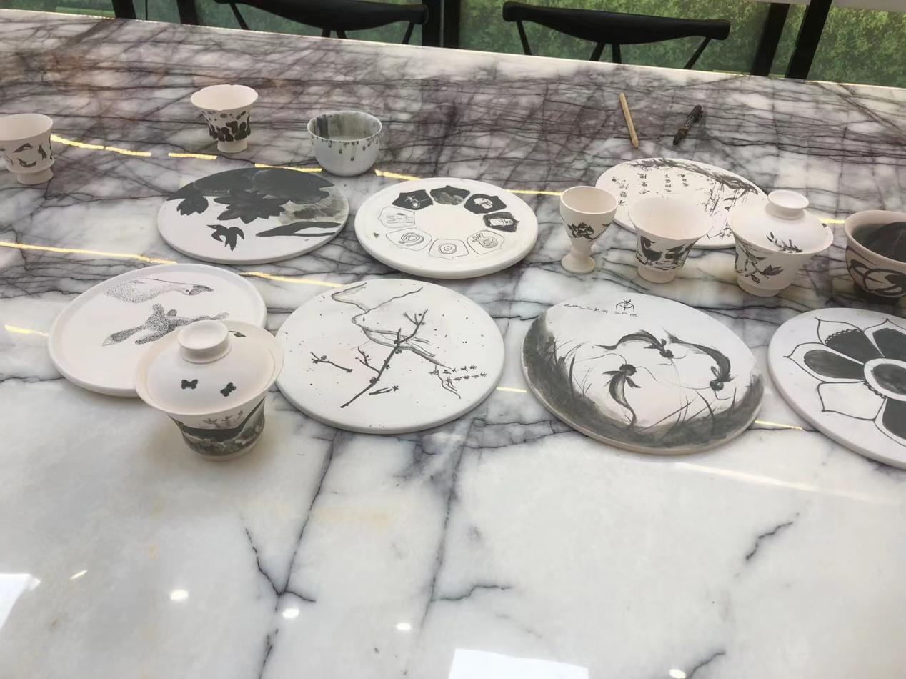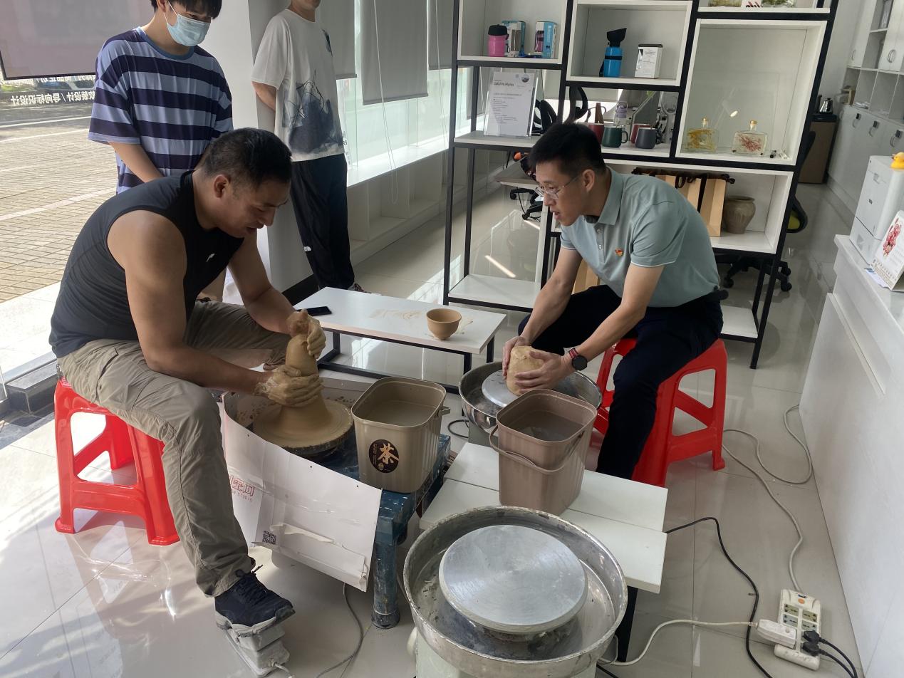 活动开始由陶艺专家专家对釉料属性、运笔方式、画面构图等进行示范讲解,对器皿拉坯与青花瓷盘面绘制进行现场教学,师生们全神贯注、认真听讲。师生们以庆祝建党101周年、喜迎党的二十大为主题,各自创作青花瓷绘制作品。