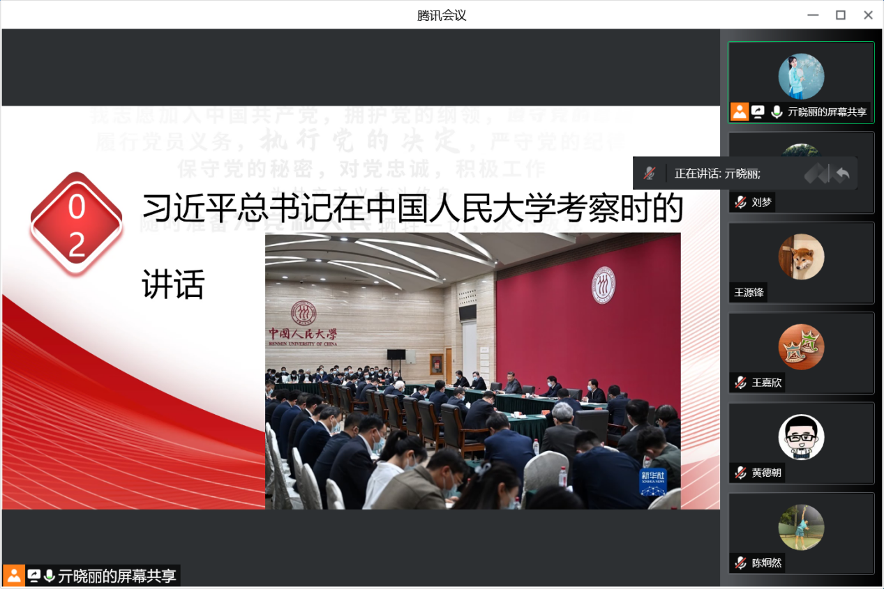 会议伊始,亓晓丽、邓海静两位党支部书记带领两个党支部所有党员集中学习了《新华社论习近平广东考察重要讲话精神》、《中共中央关于党的百年奋斗重大成就和历史经验的决议》、《习近平总书记在中国人民大学考察重要讲话》等重要文件。党总支书记陈炯然分享学习心得后表示:“希望大家重视党建工作,并从内部诊断、改革多个方面为支部工作的开展提出建议,希望能够将党建工作与学生培养工作相融合,做好整体规划设计。”