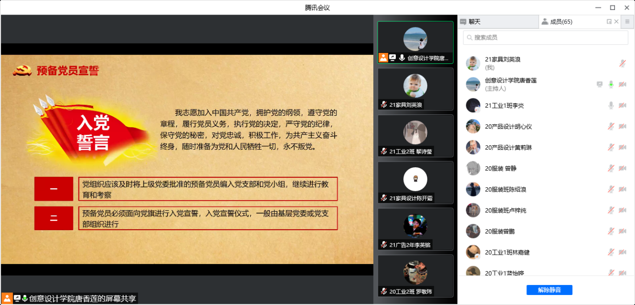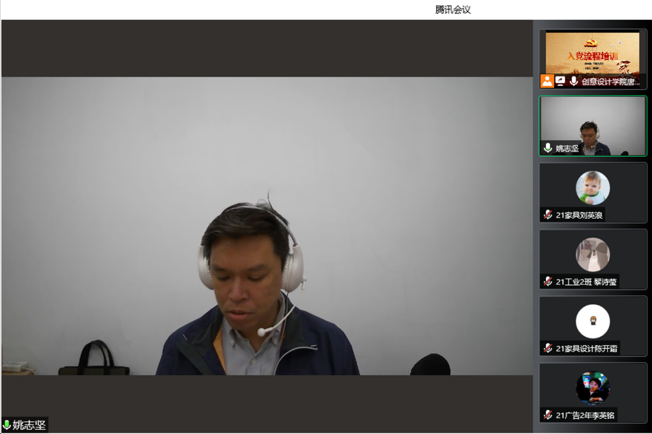 3月23日下午,创意设计学院党总支采用线上会议的形式开展了“入党流程培训”专题培训,创意设计学院党总支副书记姚志坚出席会议,64名入党积极分子参加了本次学习。本次培训由创意设计学院党总支组织委员唐香莲同志主讲。