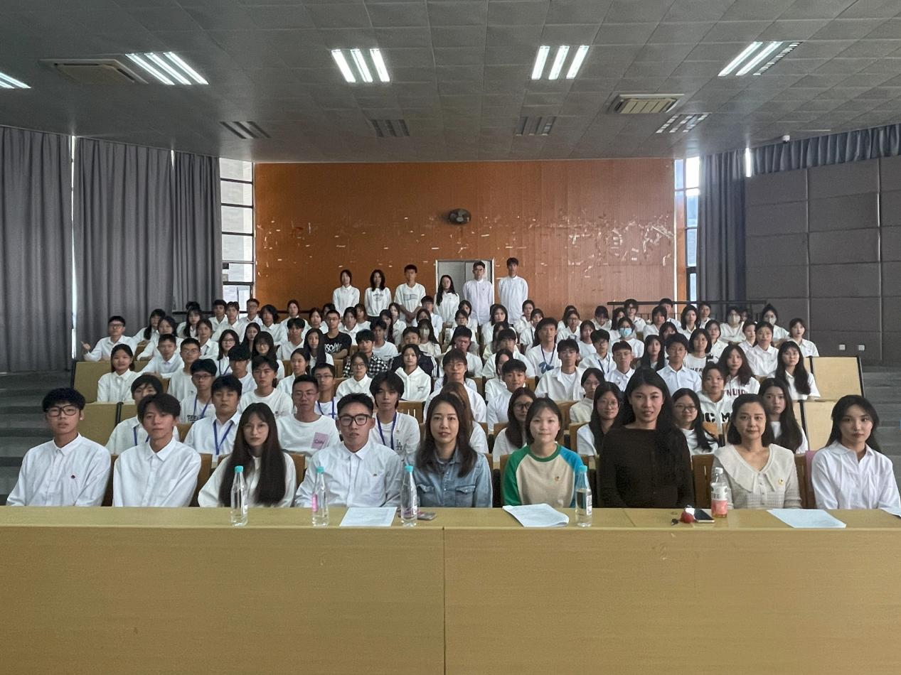 创意设计学院党总支组织委员唐香莲老师、院团委书记吕文慧老师、院团委副书记夏雨溪老师、学院辅导员毕嘉炜老师参加本次会议;会议在唱团歌后拉开帷幕。