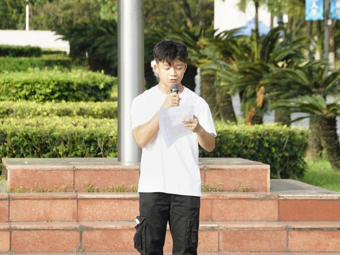 创意设计学院学生代表苏焕圣以“不负韶华,与国共进”为题在国旗下演讲,