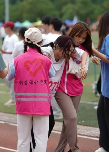 在赛场上,运动员为比赛奋斗,在赛场下,小粉衣们为维持校运会秩序奋斗。幕后的他们没有鲜花、没有掌声但是依旧热情不减、无怨无悔,辛勤工作的身影为运动会增添了一道靓丽的风景。