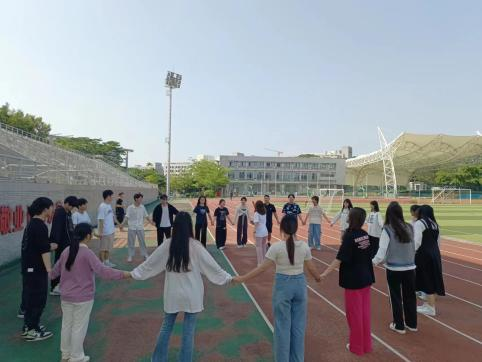 为促进大学生心理健康素质,加强同学间的交流,创意设计学院学生会心理部于4月26日下午在田径场开展了“心语相连,心手相牵”心理拓展活动。本次活动面向全校22级心理委员,吸引了20余位心理委员参加。