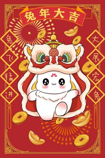 兔是十二生肖之一,温顺可爱,天真活泼,所以画面是以小兔子开心的捧着胡萝卜为中心。背景是灯笼和剪纸,具有传统文化特色。明年是兔年,希望大家每天都能像小兔子一样开开心心。