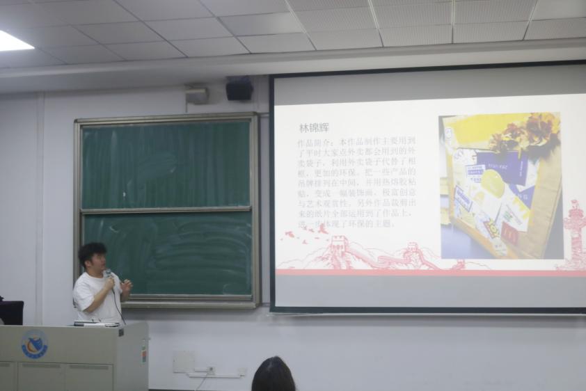 为了提高同学们的环保意识,激发创新思维,创意设计学院举办了第六届“绿色传递,百年华诞”环保创意设计大赛。比赛分为环保创意作品设计制作、PPT展示环节、评委打分、网络投票、现场颁奖五个部分。