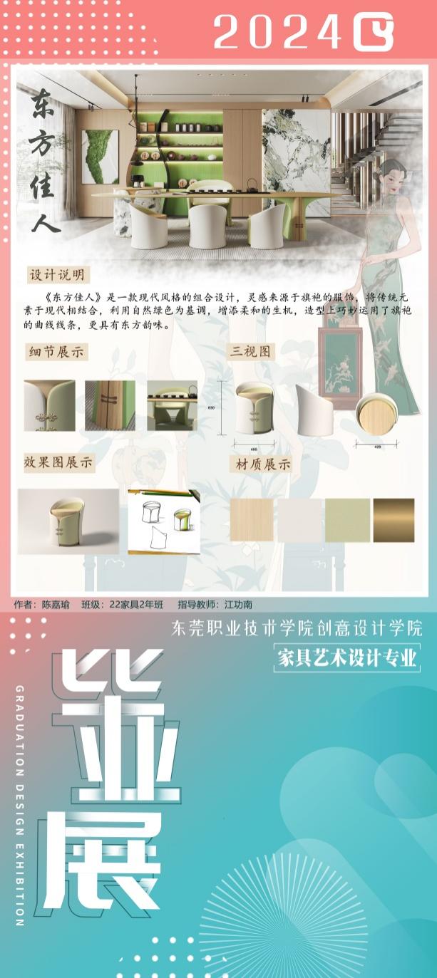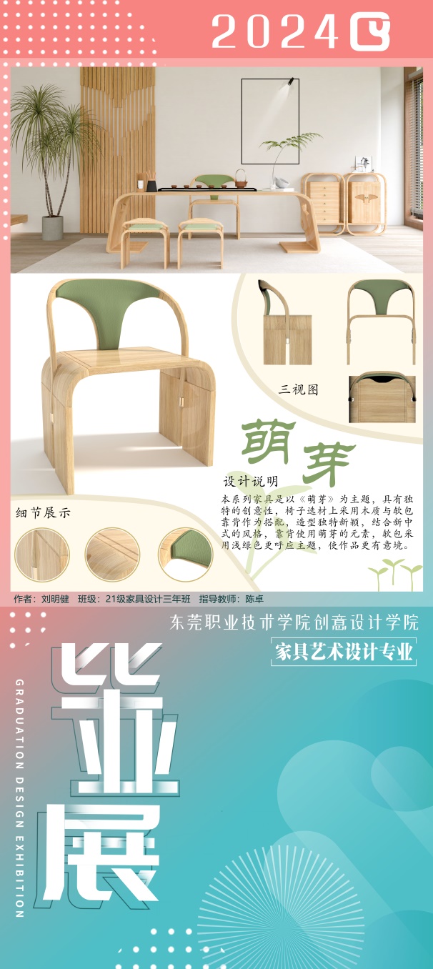 毕业设计是家具艺术设计专业大学3年最后一个综合性实践教学环节,毕业设计质量的高低也是专业教学质量的直接反映。2024届家具艺术设计专业毕业设计经过前期选题、项目设计及实物打样等过程取得了预期成果,并产生了一系列优秀毕业设计作品。优秀毕业作品充分展现了家具艺术设计专业毕业生的创意设计能力与实践动手能力,也进一步充实了家具艺术设计专业的教学成果。