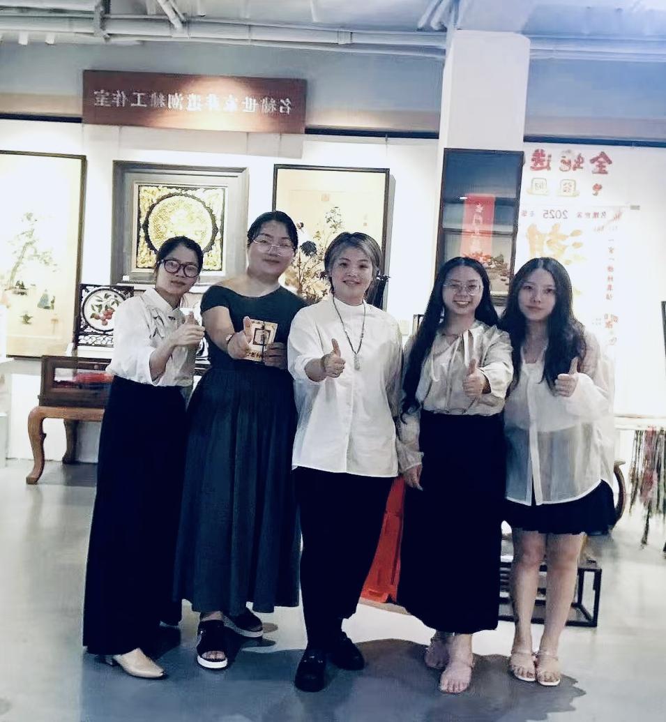 在东莞名绣世家文化有限公司展厅,东莞潮绣非遗传承人蔡小平为教师介绍了展厅陈列的潮绣文创新品和订制服饰,双方深入讨论了非遗时尚设计与服装设计专业人才的培养问题。近年来,“国潮风”兴起,新中式服装成为年轻人衣橱中不可或缺的美衣。新中式风格为企业带来新的发展机遇。双方在非遗潮绣传承、文艺展览等方面探讨了校企产学研合作框架。未来两年,双方将在非遗潮绣传承、非遗服饰创新设计、数字化服装订制等方面开展合作,并在非遗共育人才、新媒体传播推广、数字化定制技术等方面达成初步合作意向。
