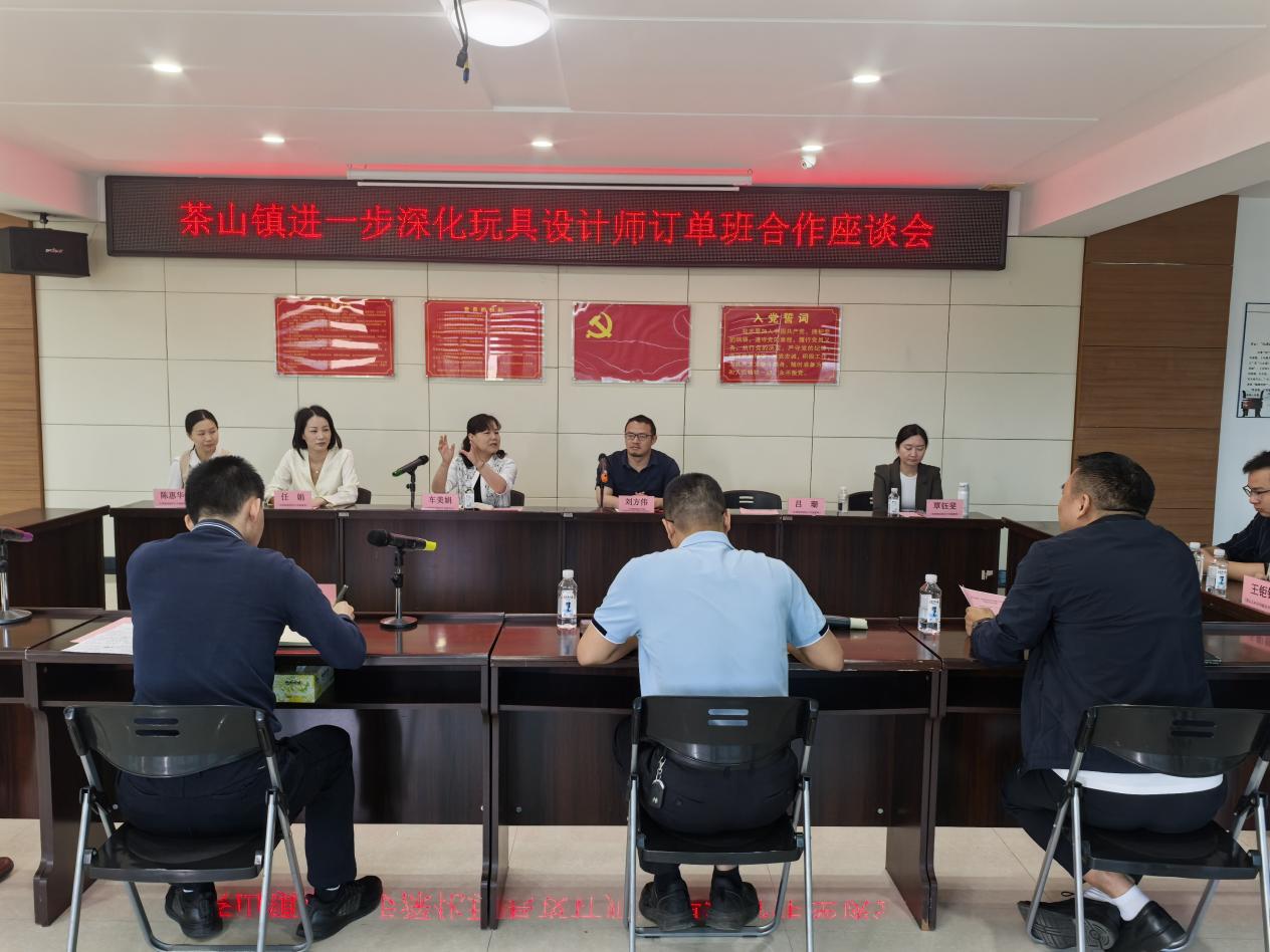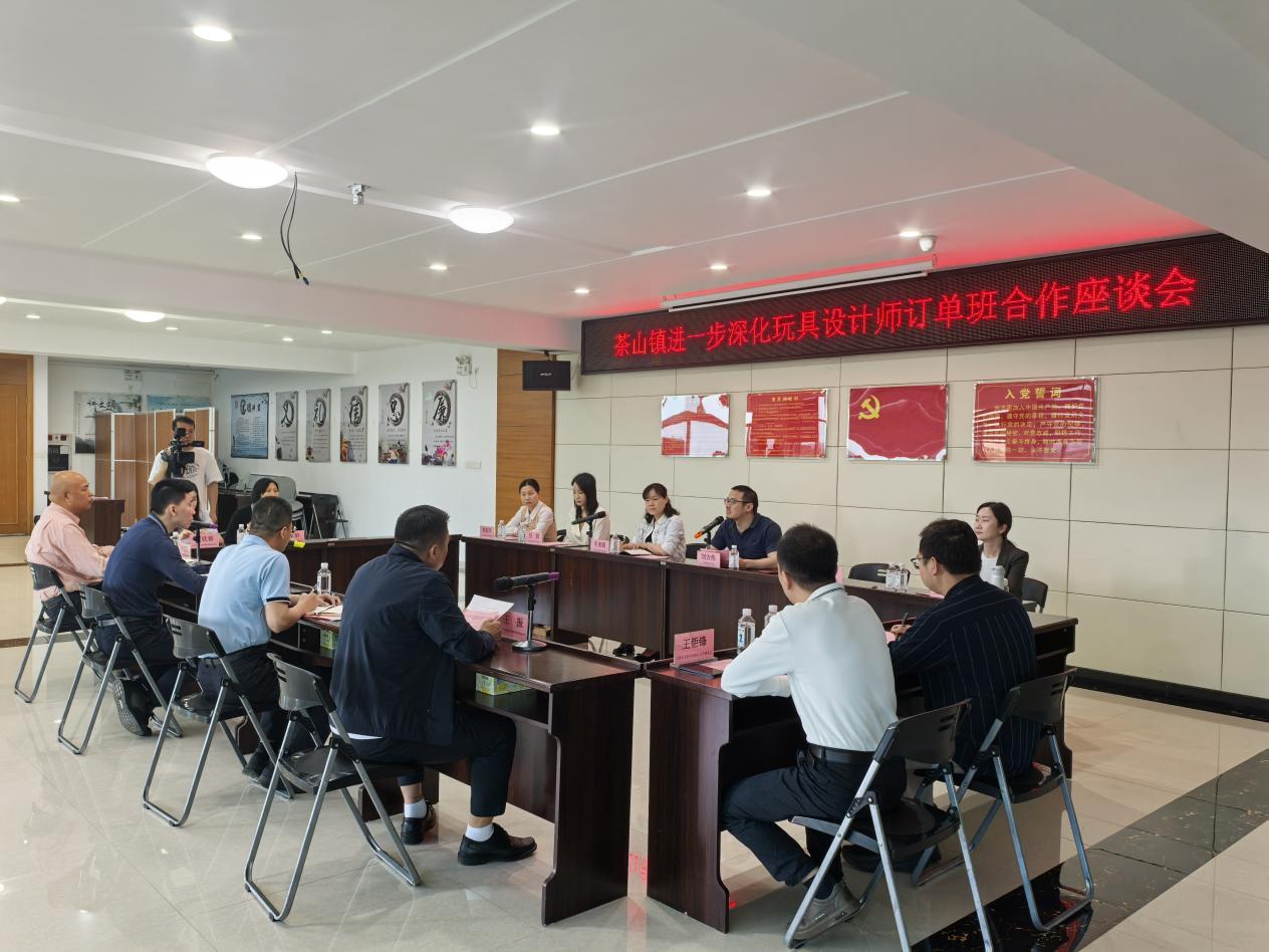 2025年4月14日,创意设计学院工业设计及产品设计专业教师在党总支书记车美娟的带领下,前往茶山人社分局参加茶山镇深化玩具设计师订单班合作座谈会,会议梳理了2024年第一期毛绒玩具订单班的成效,并归纳了相关经验与问题,并就筹备2025年的订单班进行初步沟通。创意设计学院与茶山镇人社局、“百千万工程”指挥办、玩具和婴童用品协会及东莞市玩乐童话婴儿用品有限公司共同商讨,并达成了新一期订单班的建设方案。